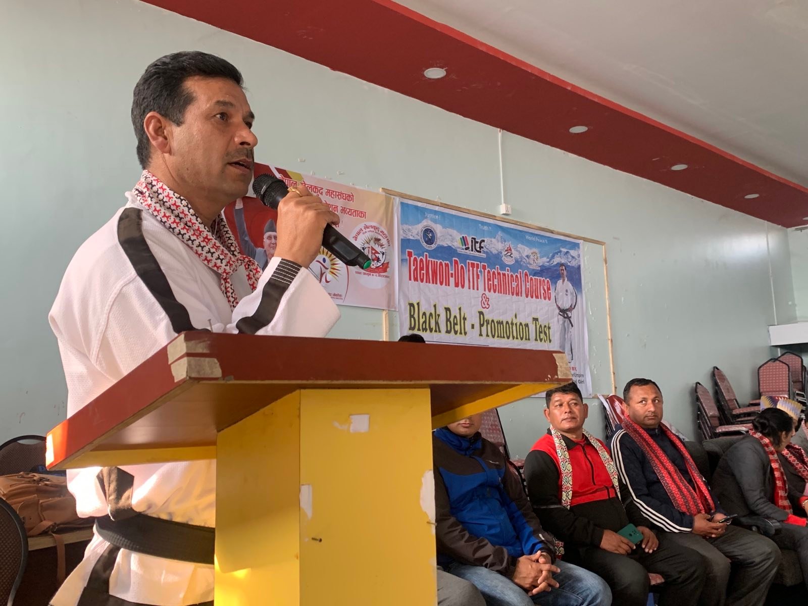 नेकोस अन्तर्गत गठित आइटिएफ तेक्वान्दोका अध्यक्ष तथा सिनियर प्रशिक्षक चेतनराज गिरीको अध्यक्षतामा भएको कार्यक्रममा नेकोसका केन्द्रिय उपमहासचिव द्वय उमेश केसी, शान्तामायाँ परियार, प्रदेश खेलकुद परिषदका सदस्य खगेन्द्र क्षेत्री, पोखरा महानगर खेलकुद विकास समितिका अध्यक्ष दिपक बहादुर गोदार, सदस्य सचिव सुभास खड्का, नेकोस आइटिएफ तेक्वान्दोका उपाध्यक्ष सुदिप आचार्य लगायतको सहभागिता रहेको थियो ।