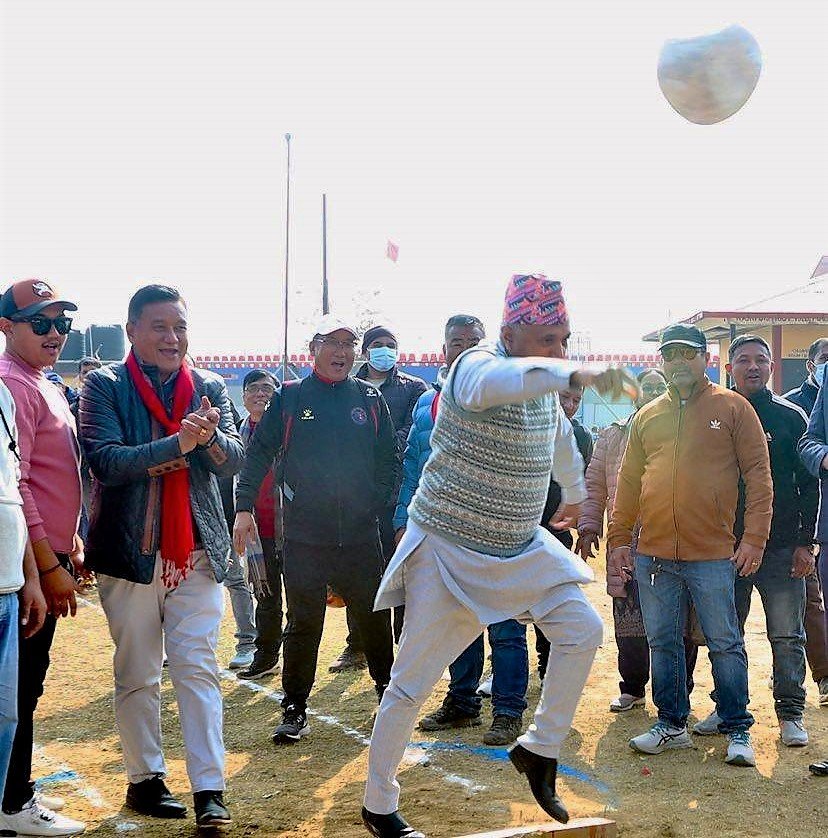 सो अवसरमा बोल्दै सांसद अधिकारीले नेपाली मौलिक खेलहरु नेपालका राष्ट्रिय खेल भएको बताए । उनले भने–“हामीले मौलिक खेलको जर्गेना आधुनिकतासहित गर्नु पर्छ । आफू हराउने र आधुनिकता रोज्ने त्यो हुन सक्दैन ।” उनले नेपालमा राष्ट्रिय खेल कुन हुने बारे लामो चर्चा र वहश भएको बताउँदै ठेलो खेलको आफ्नै महत्व रहेको बताउँदै ठेलो खेललाई अघि बढाउन आफ्नो पूर्ण सहयोग रहने प्रतिवद्धता रहने बताए ।