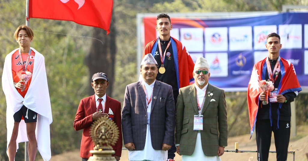 पोखरा स्पोर्टस । नेपाल एथलेटिक्स संघको आयोजनामा गोकर्ण गल्फ रिसोर्टमा भएको प्रतियोगितामा मंगलबार नेपालले पुरुष सिनियरको व्यक्तिगत र टिम दुवैमा स्वर्ण पदक जितेको छ । त्यस्तै सिनियर महिला र जुनियर महिलामा नेपालले समान २ रजत पदक जितेको छ । नेपालले थप २ कांस्य पनि जितेको हो ।