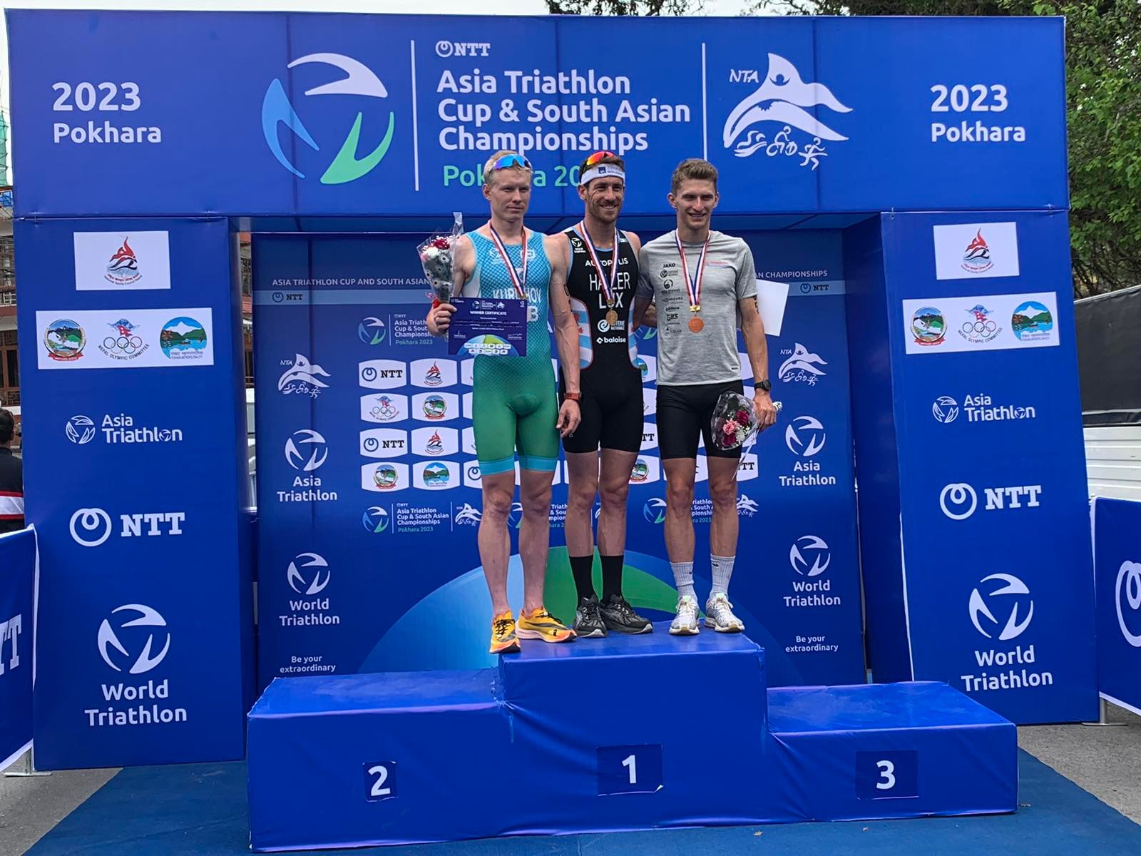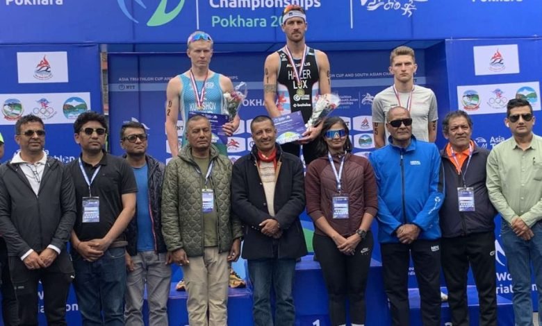 पोखरा स्पोर्टस । पोखरामा शनिबार सम्पन्न एसियन ट्राइयाथलन कपको उपाधि पुरुषतर्फ लक्जम्बर्गका बब हलर र महिला तर्फ स्लोभाकियाकी स्लोभाकियाकि माग्ररिटा विकानोभाले जितेका छन् ।