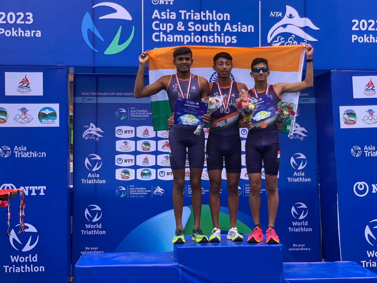 साउथ एसिया कप च्याम्पियनसिप इलाइट पुरुष तर्फ भारतका आदर्श मुरारिधर नाइर सिनिमोलले पौडी ११.०१ , साइक्लिङ ३२.५८ र दौड १८.४८ गरि कुल १ घण्टा ४ मिनेट १६ सेकेन्डमा दुरि पुरा गरे ।