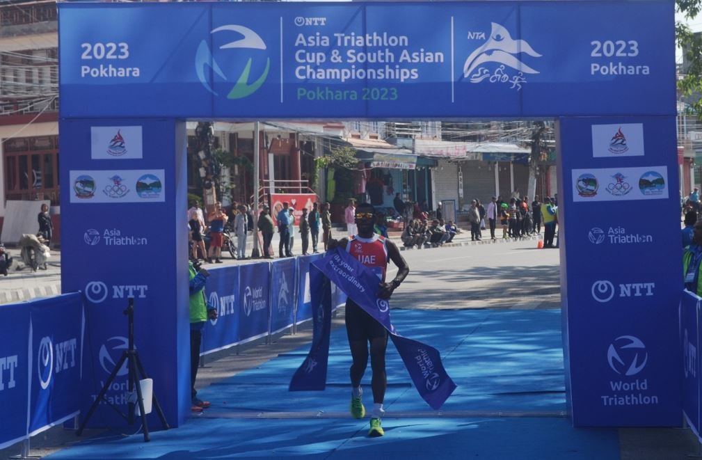 पोखरा स्पोर्टस । नेपाल ट्राइयाथलन संघको आयोजनमा पोखरामा सम्पन्न दुवाथलन तर्फको उपाधी युएईका साउद अलजावी र महिला तर्फको उपाधी भारतकी स्नेहल सुनिल जोशीले हात पारेका छन् ।