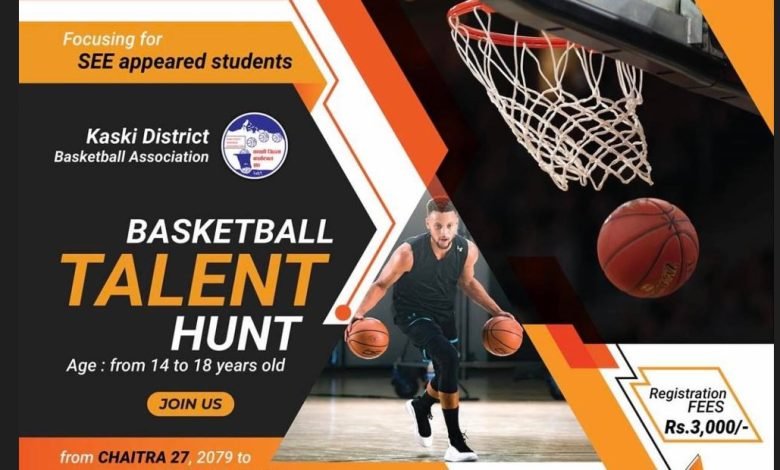 पोखरा रंगशालामा सञ्चालन हुने ‘बास्केटबल ट्यालेन्ट हन्ट’ चैत्र २७ देखि २०८० जेठ २७ सम्म २ महिनाका लागि सञ्चालन गरिनेछ । उक्त कार्यक्रममा सहभागि हुन चाहनेहरुका लागि ३ हजार शुल्क समेत तोकिएको संघले जनाएको छ ।