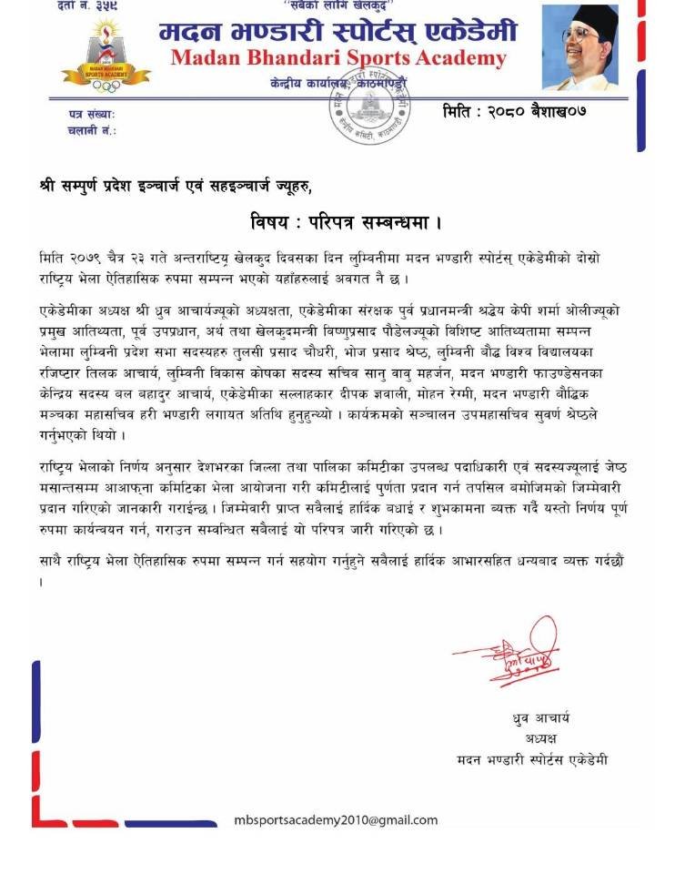 मदन भण्डारी स्पोर्टस् एकेडेमीले जिल्ला कमिटिहरुलाई दियो पूर्णता