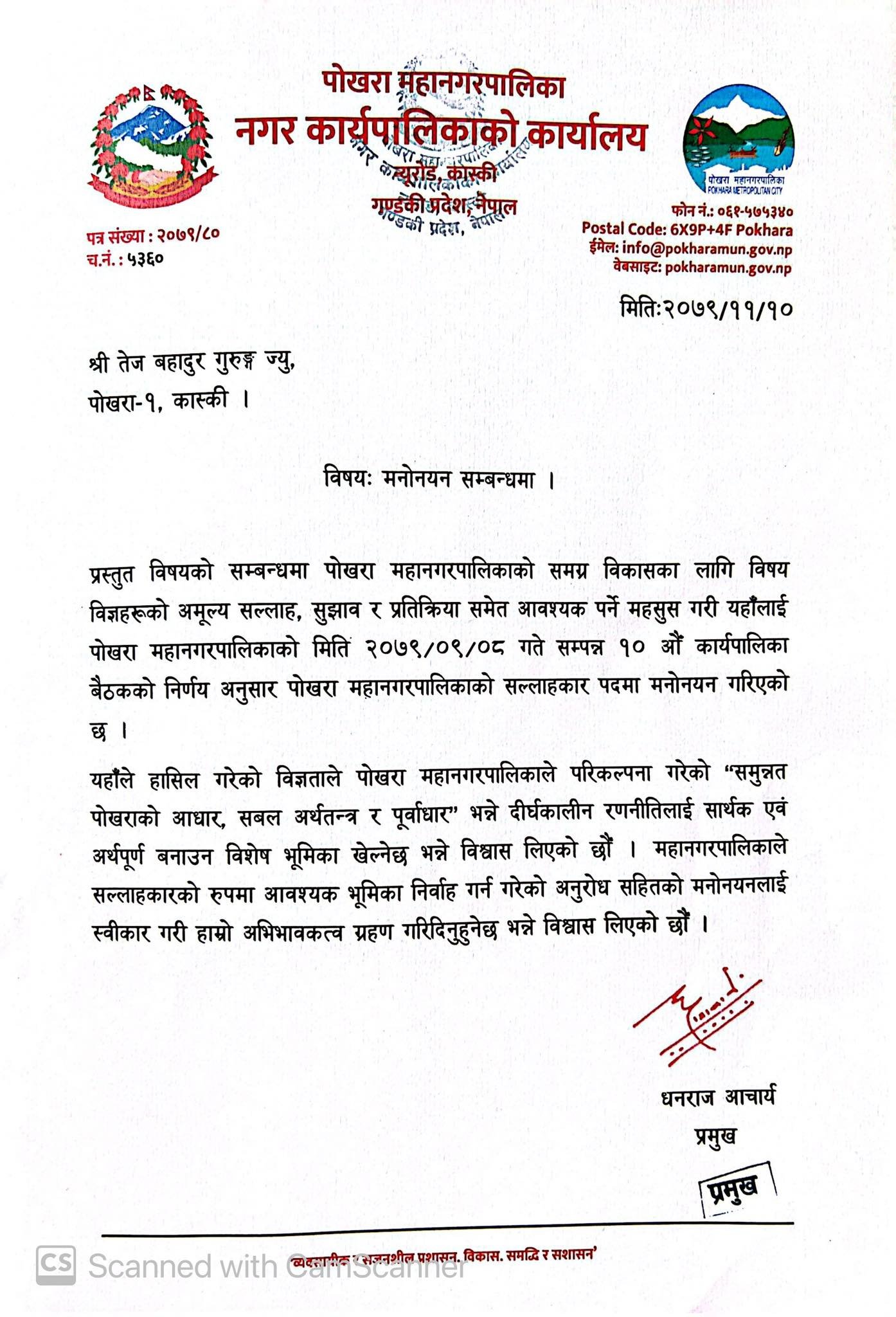 प्रदेश खेलकुद परिषद गण्डकीका संस्थापक सदस्य सचिव समेत रहेका गुरुङलाई महानगरले विज्ञको रुपमा सल्लाहकारको रुपमा मनोनयन गरेको हो ।