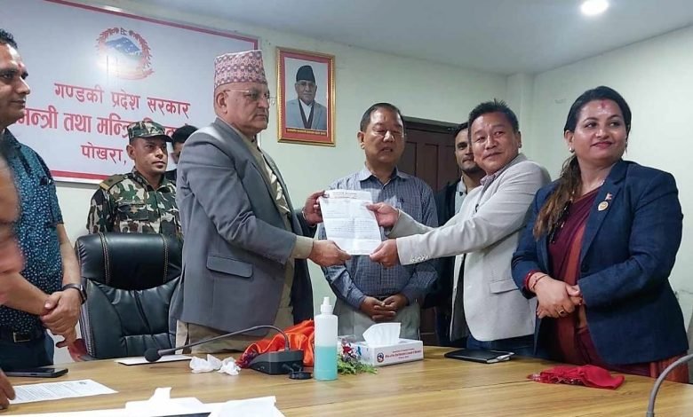 पोखरा स्पोर्टस । कास्की माछापुच्छ्रे भिडाँवारीस्थित एन्फा टेक्निकल सेन्टरको निर्माण अघि बढाउन गण्डकी प्रदेशका मुख्यमन्त्री सुरेन्द्रराज पोण्डेलाई ज्ञापन पत्र बुझाइएको छ ।