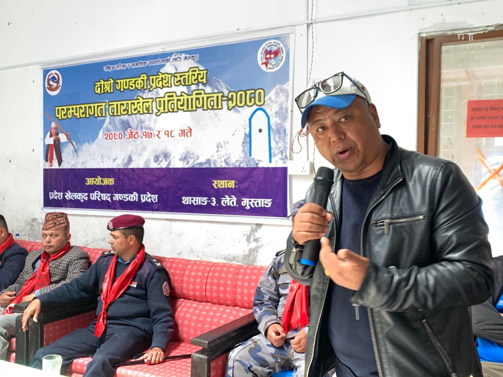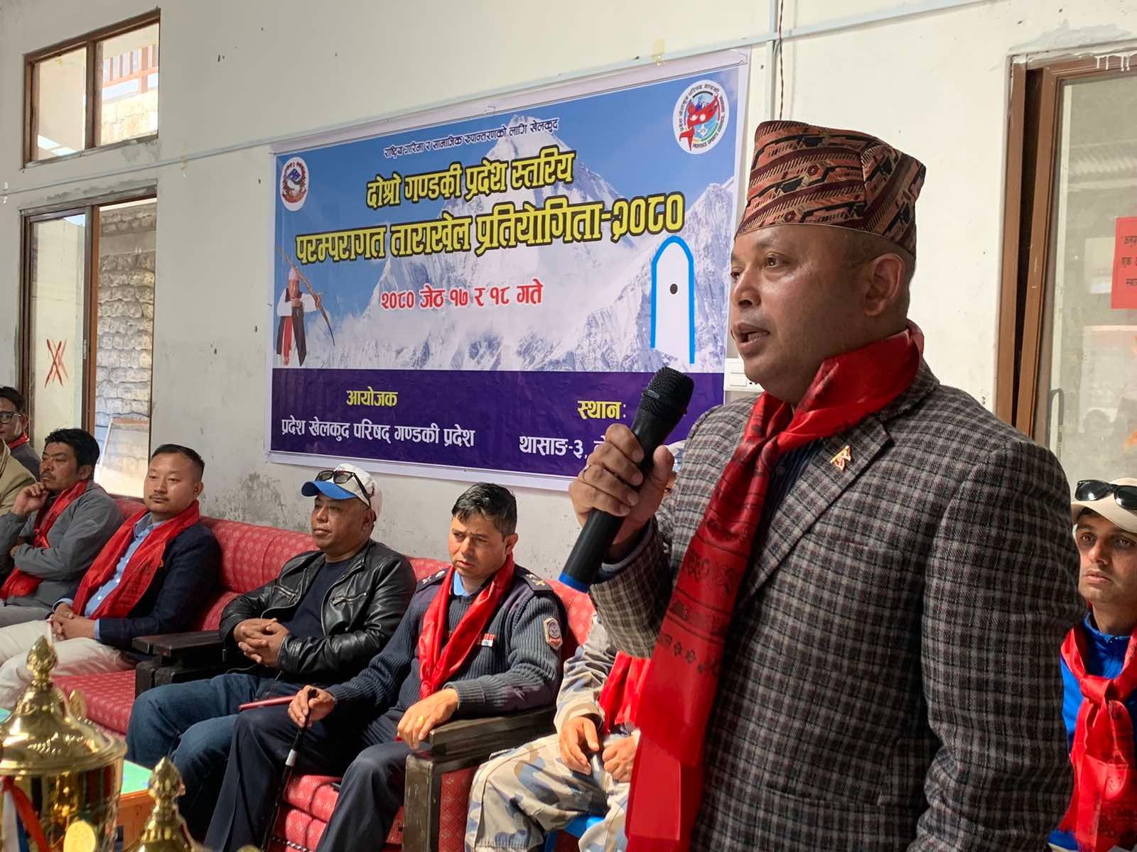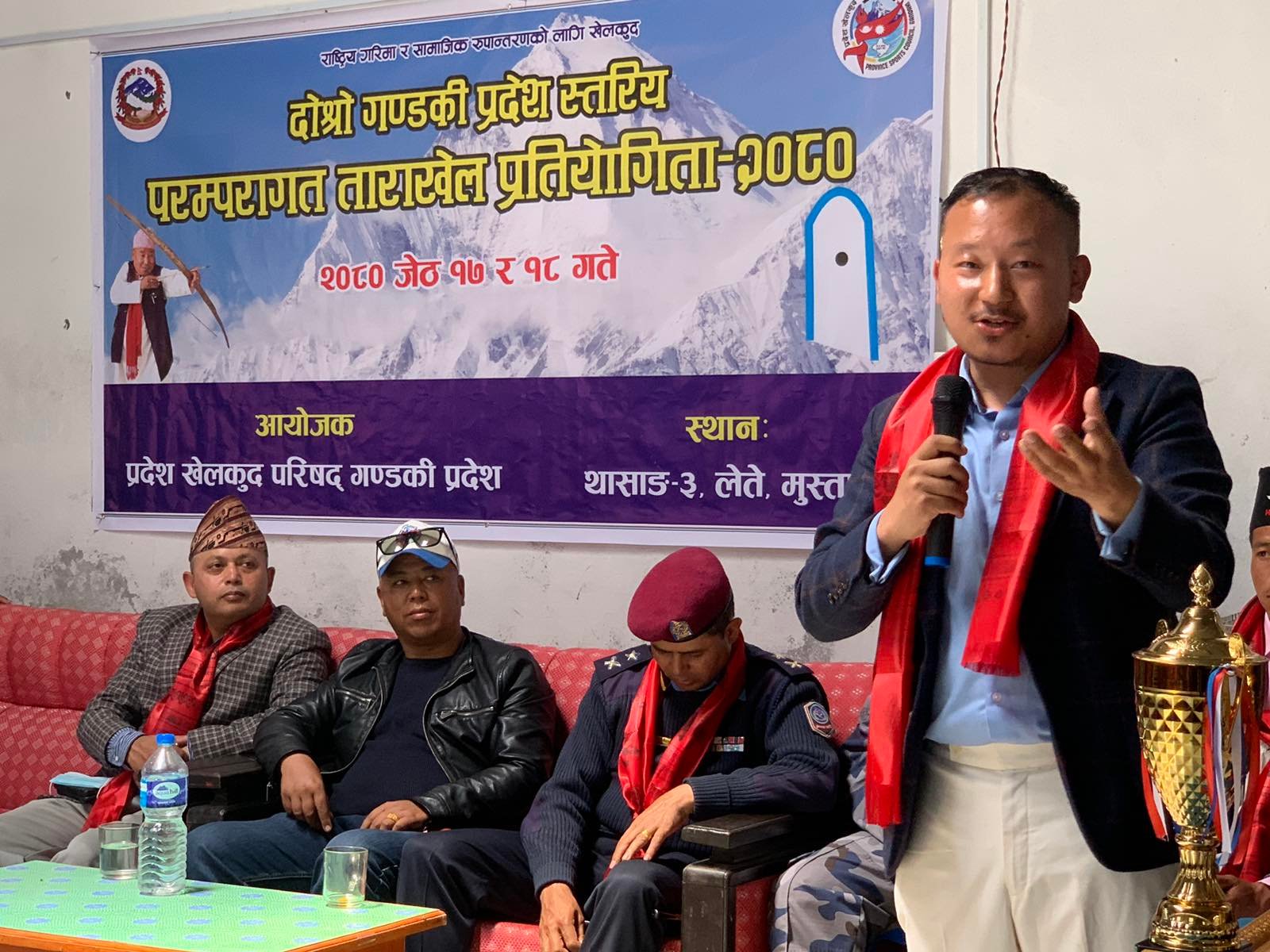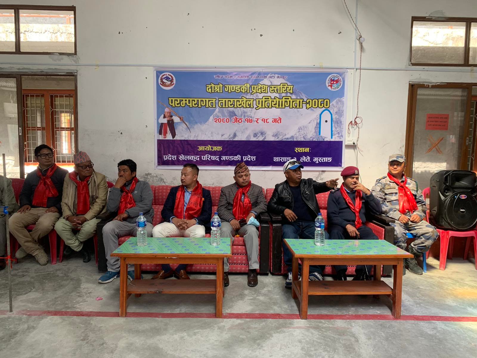 प्रदेश खेलकुद परिषदका सदस्य योगेन्द्र शेरचनको अध्यक्षतामा भएको कार्यक्रममा मुस्ताङका प्रमुख जिल्ला अधिकारी अनुप केसी, परिषदका सदस्य बसन्तराज दवाडी, परिषदका कार्यालय प्रमुख तोपलाल भुसाललगायतले परम्परागत आर्चरी खेलको महत्वका बारेमा आफ्ना भनाई राखेका थिए ।