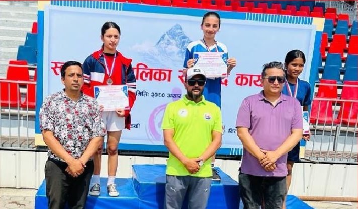 त्यस्तै छात्रा १०० मिटर तर्फ त्रिवेणी मावीकी एञ्जल अधिकारीले १४.२० सेकेण्डमा दुरी पार गरी स्वर्ण पदक जित्दा केफकी संगम भण्डारीले रजत र लिटल फ्ल्वारकी कृष्ता गुरुले काश्य पदक जितिन् ।