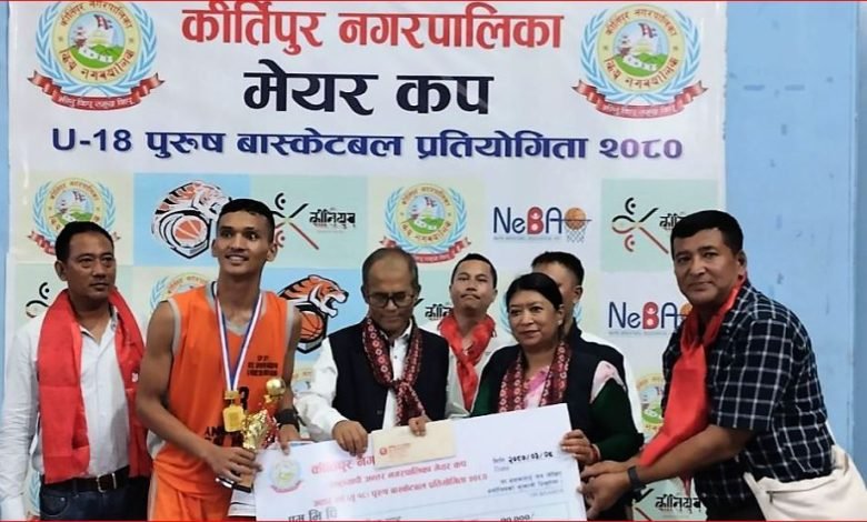 पोखरा स्पोर्टस । म्याग्दीको अन्नपूर्ण गाउँपालिकाले कीर्तिपुर नगरपालिका अन्तर नगरपालिका मेयर कप यु–१८ पुरुष बास्केटबल प्रतियोगिताको उपाधि जितेको छ ।