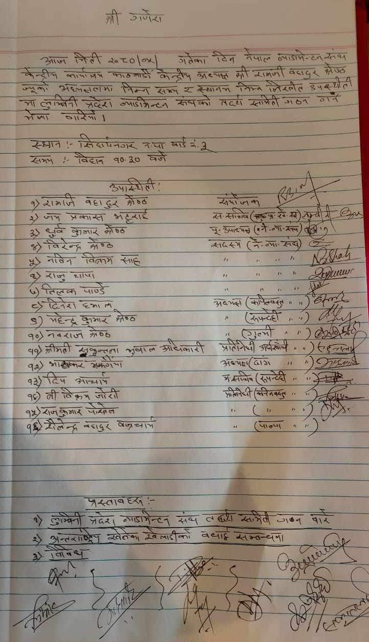 लुम्बिनी संघ गठनका लागि भेला समेत माइन्युटमा २०८० भदौ उल्लेख भए पनि मिति उल्लेख नै नभएको हो । स्वयं संघका तदर्थ समितिका संयोजक रामजी बहादुर श्रेष्ठ सहितको केन्द्रिय टोली उपस्थित रहेको भेला र उनकै अध्यक्षतामा सम्पन्न भेलाको मिति नै उल्लेख नभएको माइन्युट सार्वजनिक भएको छ । माइन्यूट श्री गणेशबाट सुरु भएको छ भने शिदार्थनगर पालिका वडा नं ३ उल्लेख छ ।
