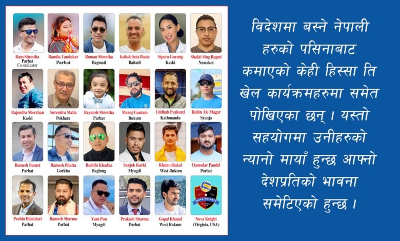 नेपाली भलिबलको कुरा होस वा नेपालमा आयोजना हुने कुनै पनि साना वा ठूला प्रतियोगिता वा कार्यक्रमहरु विदेशमा बस्ने नेपालीहरुको सहयोग नहुने हो भने ठप्प जस्तै हुन्छ । हरेक कार्यक्रममा विदेशमा बस्ने नेपालीहरुको पसिनाबाट कमाएको केही हिस्सा ति खेल कार्यक्रमहरुमा समेत पोखिएका छन् । यस्तो सहयोगमा उनीहरुको न्यानो मायाँ हुन्छ आफ्नो देशप्रतिको भावना समेटिएको हुन्छ ।