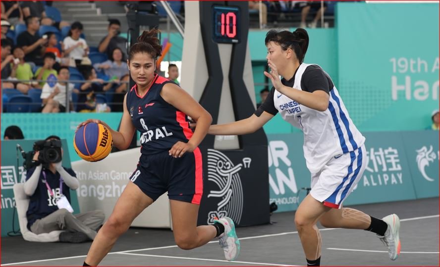 महिला थ्री बाई थ्री बास्केटबलमा नेपाल समूह चरणको सबै खेलमा पराजित भएको छ । जिओग्राफिक इन्फर्मेसन पार्क बास्केटबल कोर्टमा समूह ‘बी’ को अन्तिम खेलमा नेपाल चाइनिज ताइपेईसँग २२–२ को फराकिलोअन्तरले पराजित भयो ।