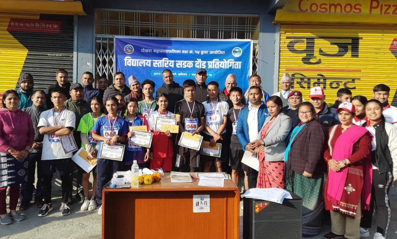 पोखरा स्पोर्टस । पोखरा महानगरपालिका वडा नंं. १५ कार्यालयले शनिबार आयोजना गरेको अन्तर विद्यालय सडक दौड प्रतियोगितामा छात्रतर्फ शुभतारा थ्री एन्जल्सका प्रकाश डाँगी र छात्रातर्फ भ्यू पोइन्ट स्कूलकी सजिना सुनार प्रथम भएकी छन् ।