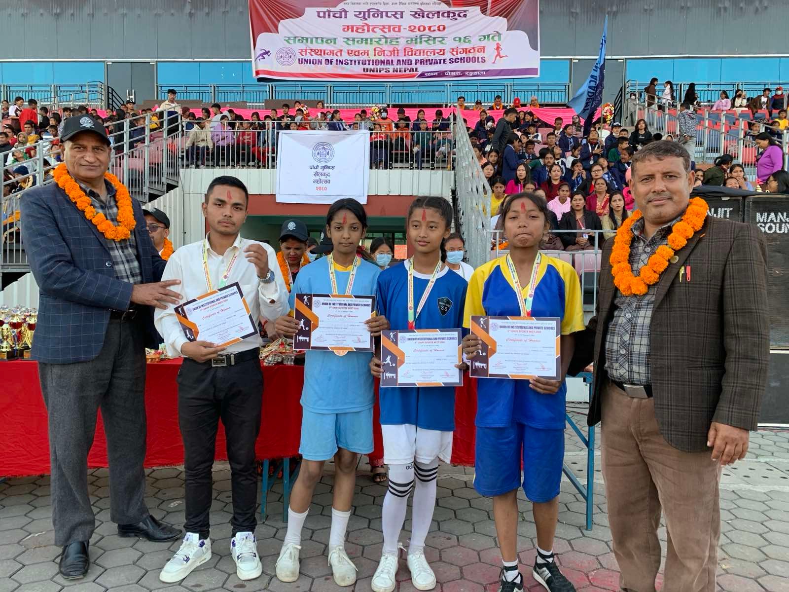 विजेता विद्यालय तथा खेलाडीहरुलाई गण्डकी प्रदेश शिक्षा निर्देशनालयका उपमहानिर्देशक घनश्याम पौडेल, जिल्ला खेलकुद विकास समितिका अध्यक्ष तोरण बहादुर बानियाँ, युनिप्स नेपालका संस्थापक अध्यक्ष ध्रुव गिरीलगायतले मेडल, प्रमाणपत्र तथा ट्रफी वितरण गरेका थिए । सो अवसरमा बोल्दै उपमहानिर्देशक पौडेलले शिक्षा संगै अतिरिक्त कृयाकलापमा खेलकुद जोड्नु पर्ने अपरिहार्य रहेको बताउँदै खेलाडी उत्पादनको मुख्य थलो नै विद्यालय रहेको उल्लेख गरे ।