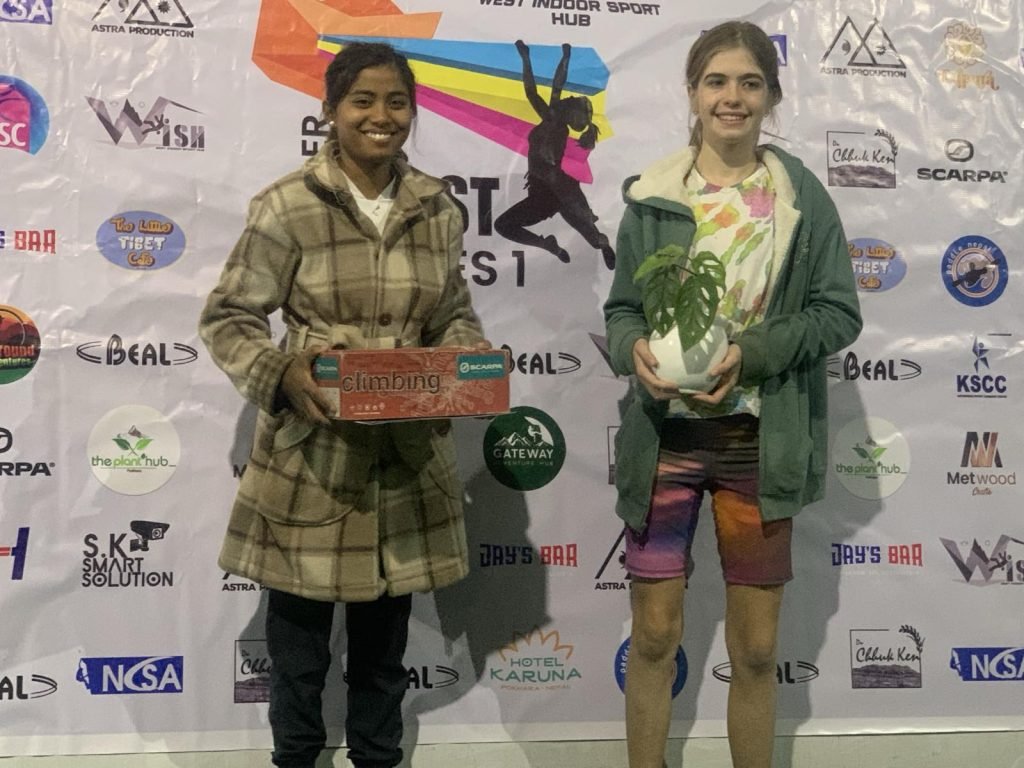 गण्डकी प्रदेश क्लाइम्विङ स्पोर्टस एसोसियसनको समन्वयमा तथा वेष्ट स्पोर्टस इनडोर हवको आयोजनामा पहिलो पटक आयोजित उक्त प्रतियोगिता रोनक र स्वस्तिका विजेता बनेका हुन् । यस संगै पुरुषतर्फ सुलभ राई दोश्रो र साजन लामा तेश्रो भएको प्रतियोगिताको संयोजक शिदार्थ केसीले जानकारी दिए ।