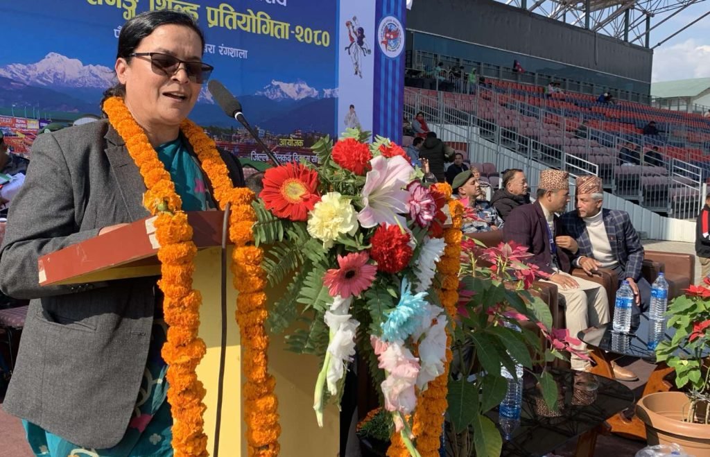 अहिलेका यूवाहरु भोलिको देशका कर्णधार समेत रहेको जनाउँदै अनुशासन नै जिवनको मुख्य सम्पती रहेको जनाउँदै भनिन्–“खेल क्षेत्र कहिले पनि हरेश नखाने क्षेत्र हो । तपाईहरुलाई यो हिमाल र देश चिनाउने कर्णधार हो । त्यसैले पनि अनुशासन आवश्यक छ । त्यो अनुशासन न अरु कसैलाई दिन सक्नुहुन्छ न अरु कोही संग माग्न सक्नुहुन्छ । यो प्रतियोगिताबाट पक्कै पनि यहाँहरुले जिवन मार्ग बनाउने अनुशासन सिकेर फर्किनुहुनेछ ।”