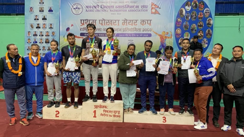 पोखरा स्पोर्टस । दोश्रो राष्ट्रिय तथा पोखरा मेयर कप ब्याडमिन्टन प्रतियोगिताको उपाधि प्रिन्स दाहाल र रशिलाले महर्जनले जितेका छन् । कास्की जिल्ला ब्याडमिन्टन संघको आयोजना, पोखरा महानगर पालिकाको मुख्य प्रायोजन तथा नेपाल पर्यटन बोर्ड पोखराको प्रवर्द्धनमा शनिबार सम्पन्न प्रतियोगितामा मेन्स ओपन सिंगल्सतर्फ प्रिन्स र उमेन्स सिंगल्सतर्फ रशिलाले उपाधि जितेका हुन् । उपाधि संगै उनीहरुले समान नगद रु ५०–५० हजारका साथमा ट्रफि, मेडल तथा प्रमाणपत्र हात पारे ।