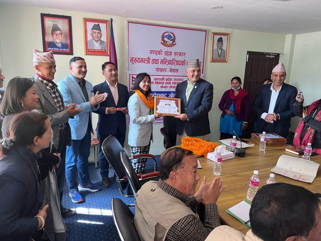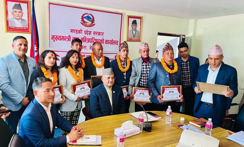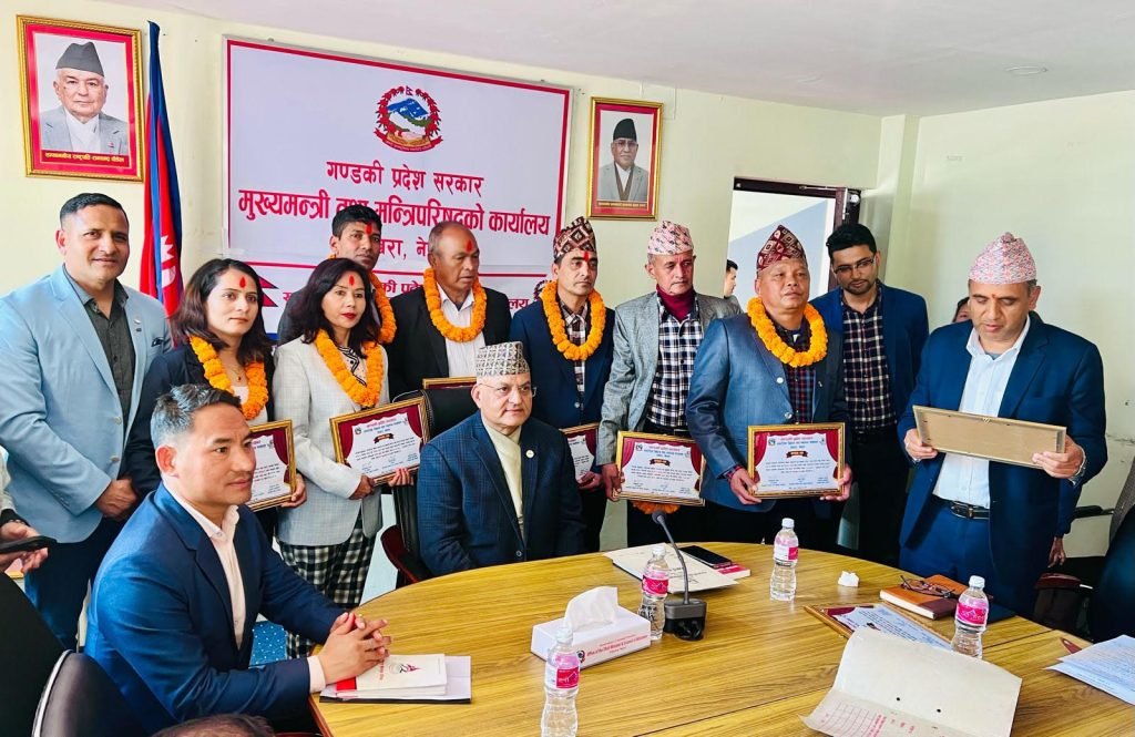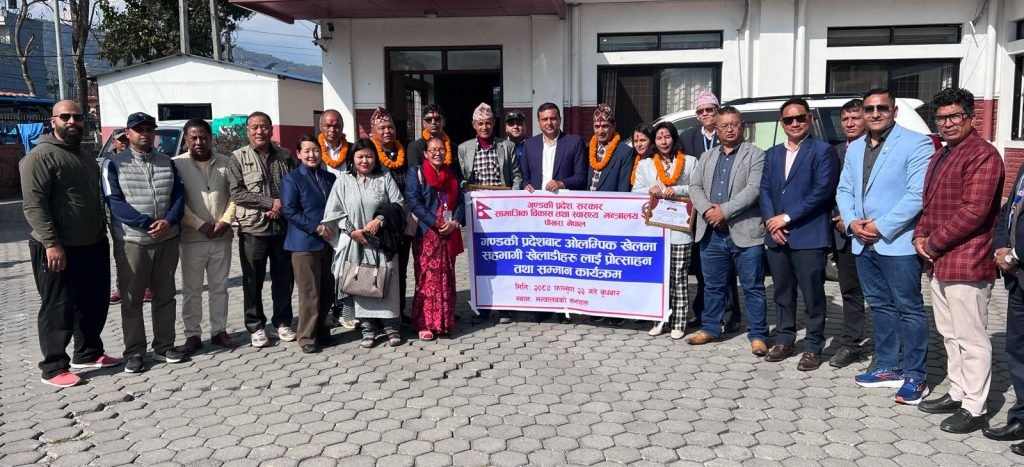 पोखरा स्पोर्टस । गण्डकी प्रदेशबाट ओलम्पिक खेलमा सहभागी भएका खेलाडीहरुलाई गण्डकी प्रदेश सरकारले सम्मान गरेको छ । मासिक ५ हजार नगद (वार्षिक ६० हजार)सहित बुधबार गण्डकी प्रदेशका मुख्यमन्त्री सुरेन्द्रराज पाण्डेले सम्मान गरेका हुन् ।