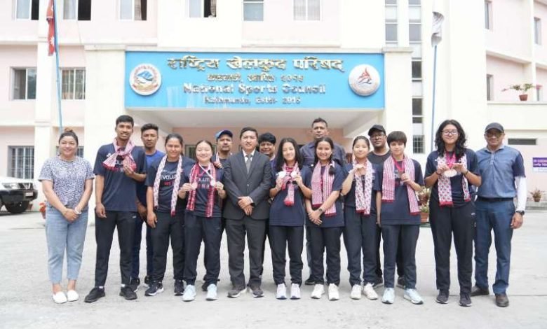 त्रिपुरेश्वरस्थित राखेपको सभाकक्षमा खेलाडीसंगको भेटमा सदस्य–सचिव घिसिङले सफलताको प्रशंसा गर्दै बधाई दिएका हुन् ।