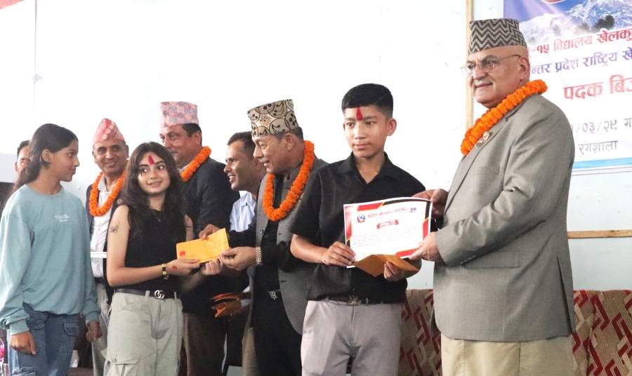 प्रदेश खेलकुद परिषद गण्डकीले पोखरामा शनिबार एक कार्यक्रमको आयोजना गरी उनीहरुलाई नगदसहित पुरस्कृत एवं सम्मान गरिएको हो । बागमती प्रदेशस्तरीय राष्ट्रिय प्रतियोगिता, १४औं केन्द्रियस्तरीय राष्ट्रपति रनिङ्ग शिल्ड र यू–१५ विद्यालयस्तरीय खेलकुद प्रतियोगिताका बिजेता १ सय ७८ जना खेलाडीहरुलाई पुरस्कृत गरिएको छ ।