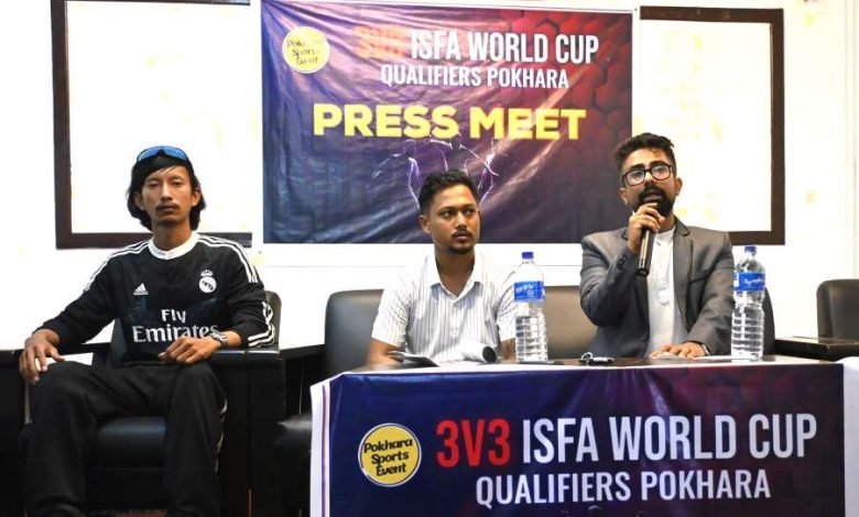 पोखरामा शनिबार र आइतबार गरी दुई दिने ‘थ्री भर्सेस थ्री’ आइ.एस.एफ.ए वल्र्डकपको छनोट खेल हुने भएको हो । पोखरामा हुने यो प्रतियोगिताका उत्कृष्ट चार टिमले काठमाडौंमा हुने राष्ट्रिय छनोट खेल्न पाउने पोखराको छनोटको जिम्मा पाएको पोखरा स्पोर्टस् इभेन्टका सीइओ मनिष वस्थाले शुक्रबार आयोजित पत्रकार सम्मेलनमा जानकारी दिए ।