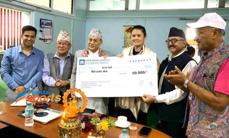 पोखरा स्पोर्टस । गण्डकी विश्वविद्यालयले नेपाली राष्ट्रिय महिला भलिबलकी टिमकी कप्तान अरुणा शाहीलाई सम्मान गरेको छ ।