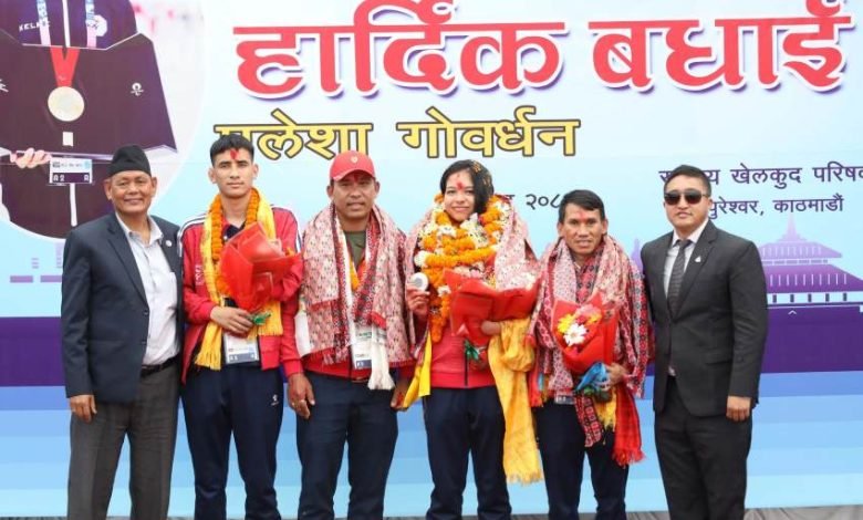 खेलकुदमन्त्री चौधरीले पदक जितेर पलेशाले विश्वमाझ नै देशको शीर उच्च पारेकोमा धन्यवाद व्यक्त गर्दै राष्ट्रको गौरव निर्माण गर्न सबैभन्दा पहिला खेलाडी र प्रशिक्षकलाई प्राथमिकतामा राख्नु पर्ने बताए । उनले खेल संघलाई खेल विकासमा ध्यान दिन आग्रह गर्दै एकतवाद्ध भएर काम गर्न सके खेलकुदले देशलाई धेरै दिन सक्ने विश्वास व्यक्त गरे ।