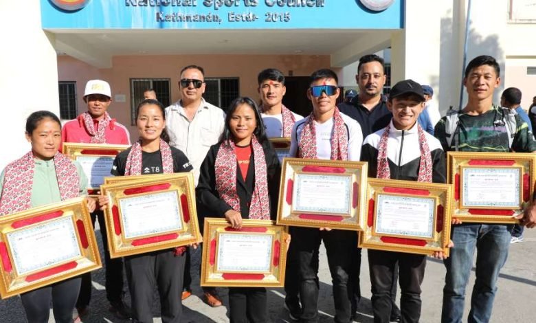 पोखरा स्पोर्टस । नेपाल एडभेन्चर रनिङ महासंघले एसियाली ट्रेल रेसका पदक विजेता खेलाडीलाई शुक्रबार नगदसहित सम्मान गरेको छ ।