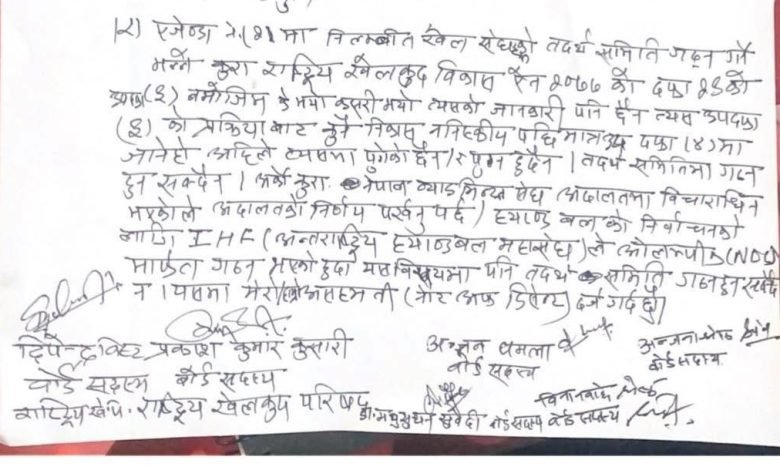 ह्याण्डबल संघको विषयमा माओबादी निकट राखेप बोर्ड सदस्यहरुको ‘नोट अफ डिसेन्ट’