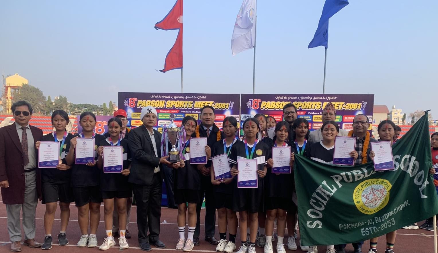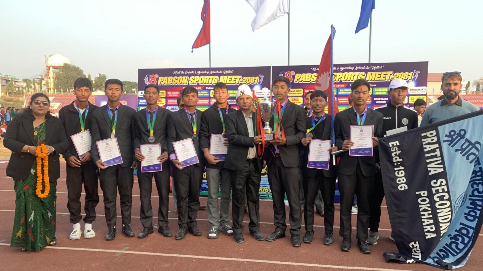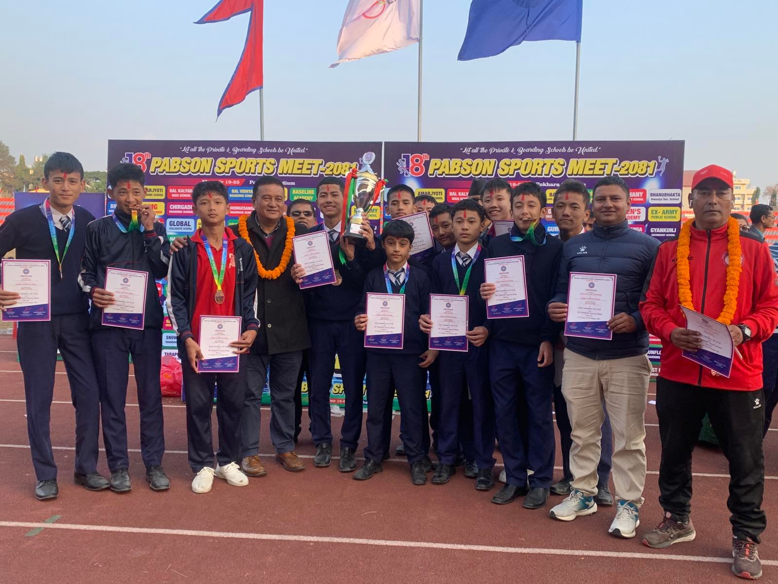 दुई विद्यालय समग्रमा बराबर अङ्क प्राप्त गर्दै च्याम्पियन बने पछि ‘प्याब्सन रनिङ शिल्ड ट्रफी’ दुबै विद्यालयले बाँडेका छन् । एक साता लामो चलेको प्याब्सन स्पोर्टस मिटमा दुबै विद्यालयले समग्रमा समान १२–१२ अङ्क हात पारे ।
