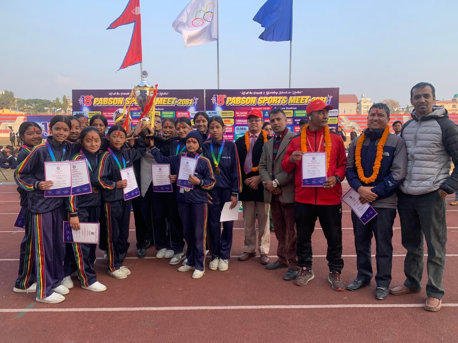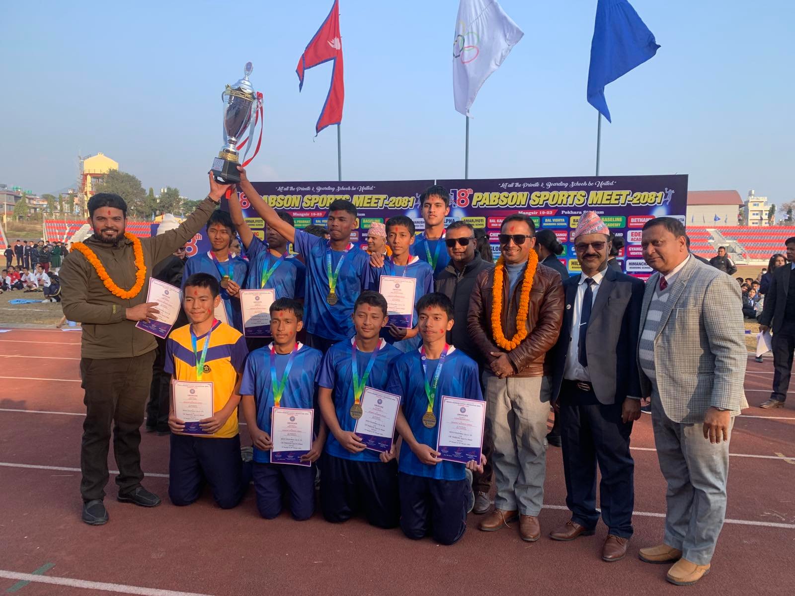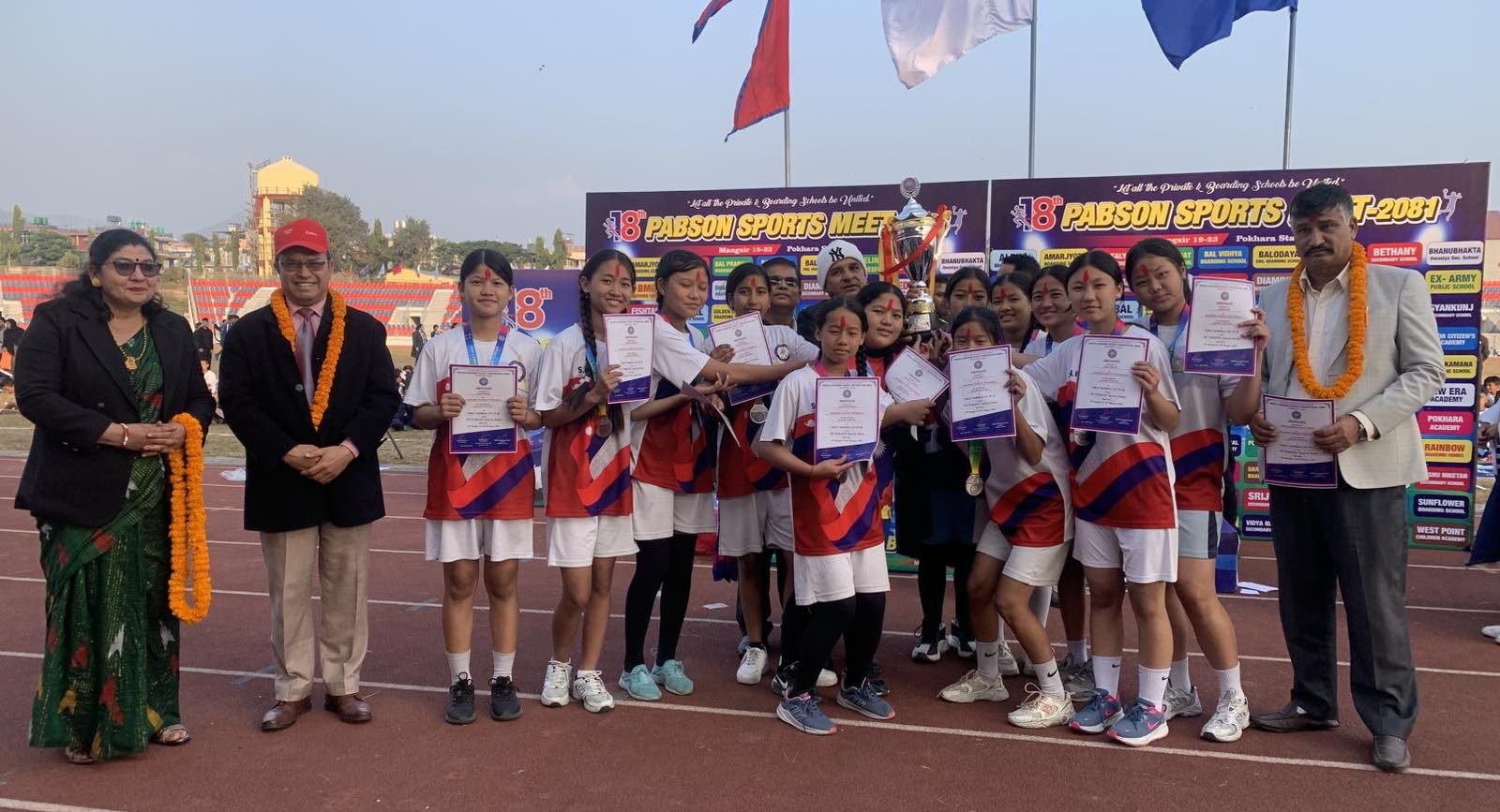 दुई विद्यालय समग्रमा बराबर अङ्क प्राप्त गर्दै च्याम्पियन बने पछि ‘प्याब्सन रनिङ शिल्ड ट्रफी’ दुबै विद्यालयले बाँडेका छन् । एक साता लामो चलेको प्याब्सन स्पोर्टस मिटमा दुबै विद्यालयले समग्रमा समान १२–१२ अङ्क हात पारे ।