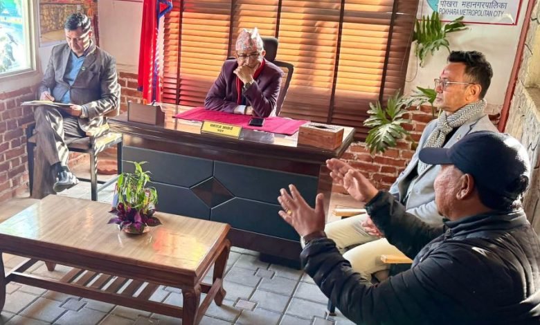 पोखरा महानगर पालिका वडा नं ९ का अध्यक्ष दिपेन्द्र मर्सानीको पहलमा सहारा क्लब पोखराका पदाधिकारीहरु सहितको टोलीले पोखरा महानगर पालिकाका मेयर धनराज आचार्य संग छलफल गरेको हो ।