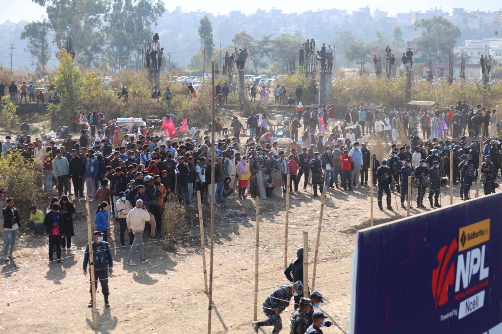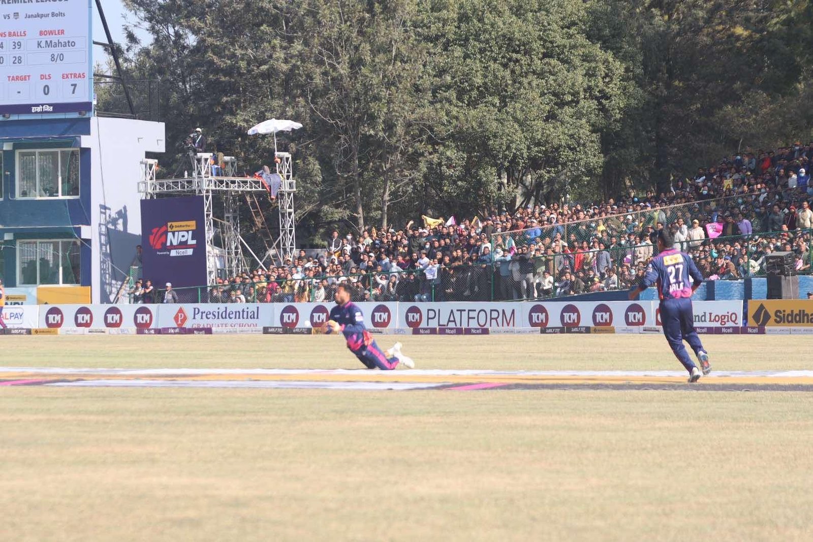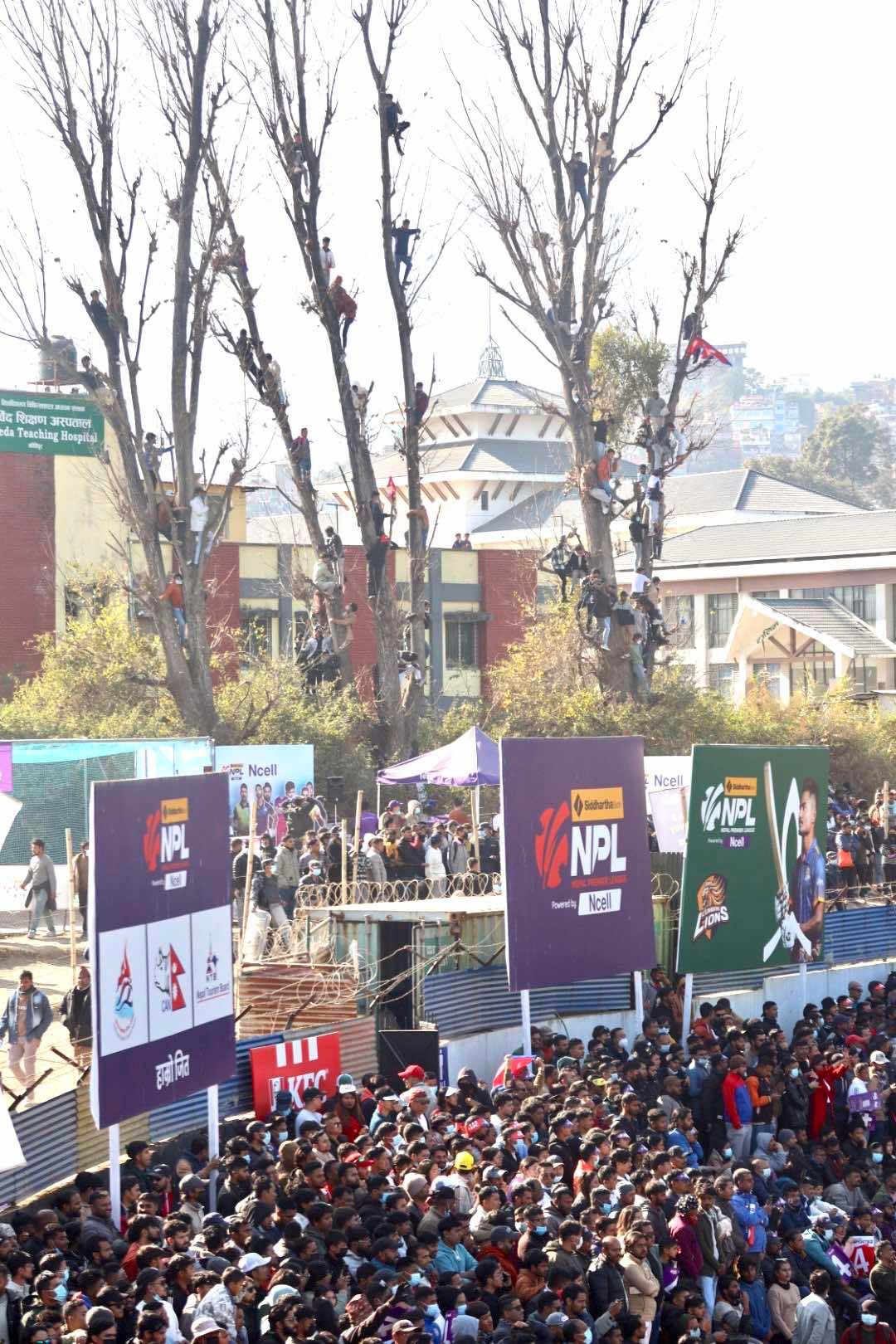 पोखरा स्पोर्टस/तस्विर : सुदर्शन रञ्जित काठमाण्डौ/ नेपाल प्रिमियर लिग अन्तर्गत यति बेला जनकपुर बोल्ट्स र सुदुर पश्चिम बिचको फाइनल खेल काठमाण्डौको त्रिवी क्रिकेट मैदानमा जारी छ । दर्शकको क्रेज जारी एनपिएलको फाइनलमा समेत उत्तिकै छ । तारबार, रुखका हाँगाहरुमा समेत दर्शकले कव्जा जमाएका छन् ।