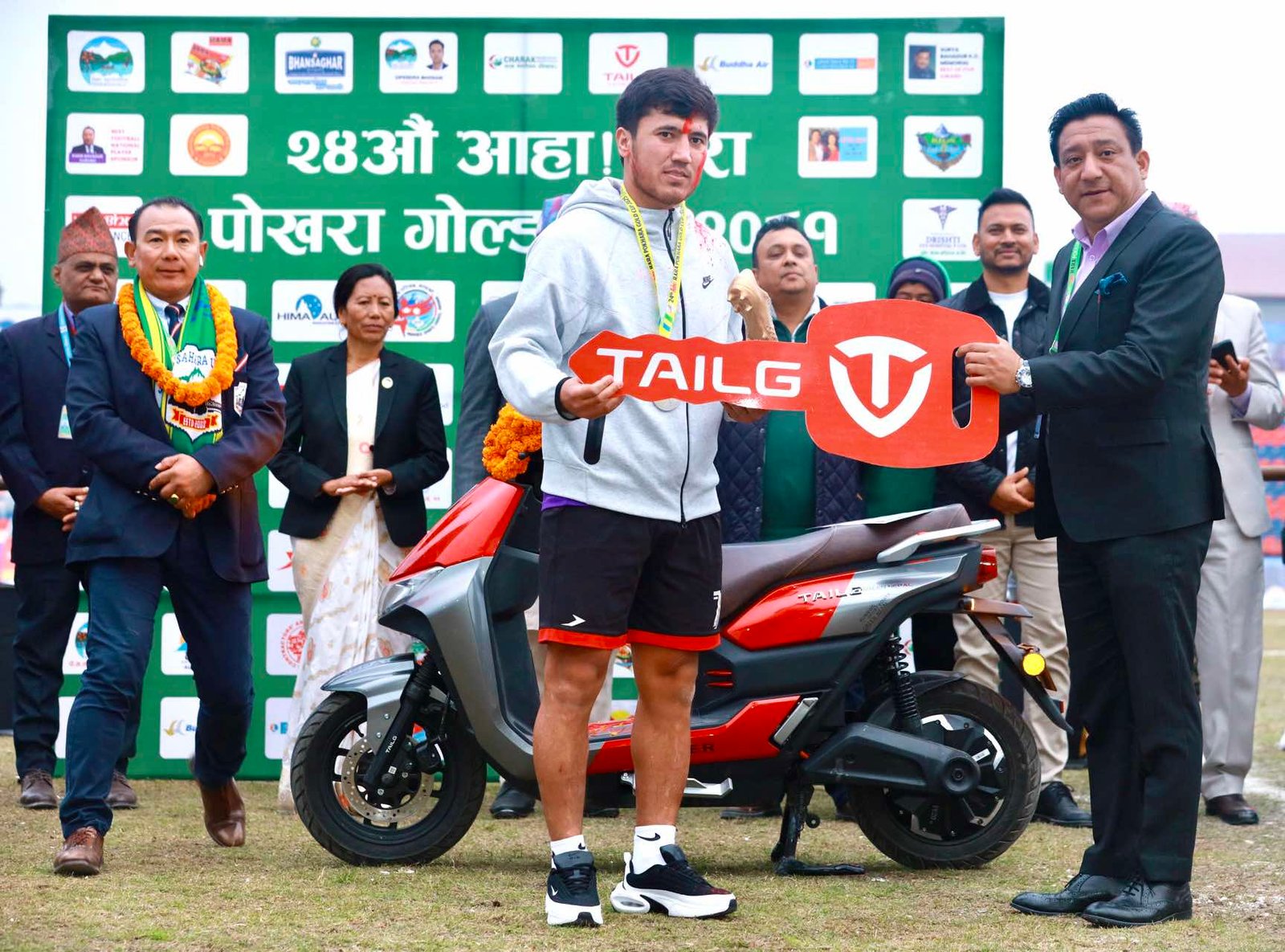 मष्ट भेलुयबल अवार्ड जितेका ब्ल्याक बुल्स एफसीका साभकातजोन सात्तोरोभले टेलजी स्कुटर हात पार्दा अन्यले उत्कृष्ट खेलाडीहरुले जनही नगद २५–२५ हजार प्राप्त गरे ।