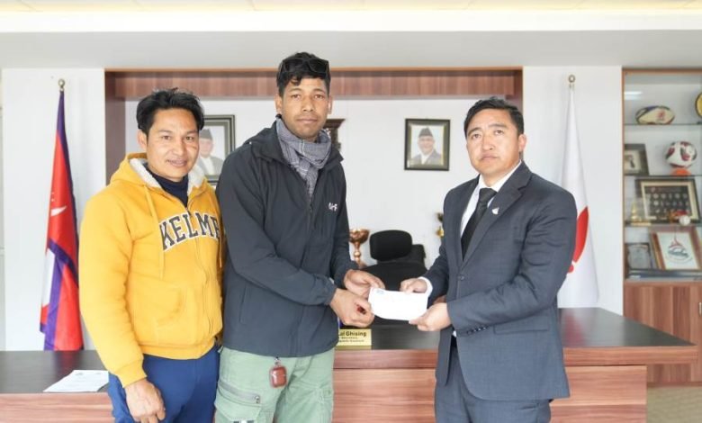 कोषका संयोजक समेत रहेका राष्ट्रिय खेलकुद परिषद् (राखेप) का सदस्य–सचिव टंकलाल घिसिङले सूर्यका दाजु सन्तोषलाई ७५ हजार रुपैयाँ बराबरको चेक हस्तान्तरण गर्दै सूर्यको शीघ्र स्वास्थ्य लाभको कामना गरे ।