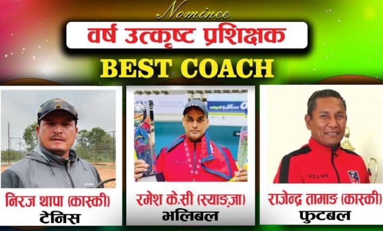 यही वैशाख २६ गते शुक्रबार हुने अवार्डका लागि चार विधामा उत्कृष्ट तीन खेलाडीको मनोनयन सार्वजनिक भइसकेको छ । यसमध्ये उत्कृष्ट प्रशिक्षक तर्फको विधामा फुटबलका राजेन्द्र तामाङ, भलिबलका रमेश केसी र टेनिसका नीरज थापा उत्कृष्ट तीनमा परेका छन् ।