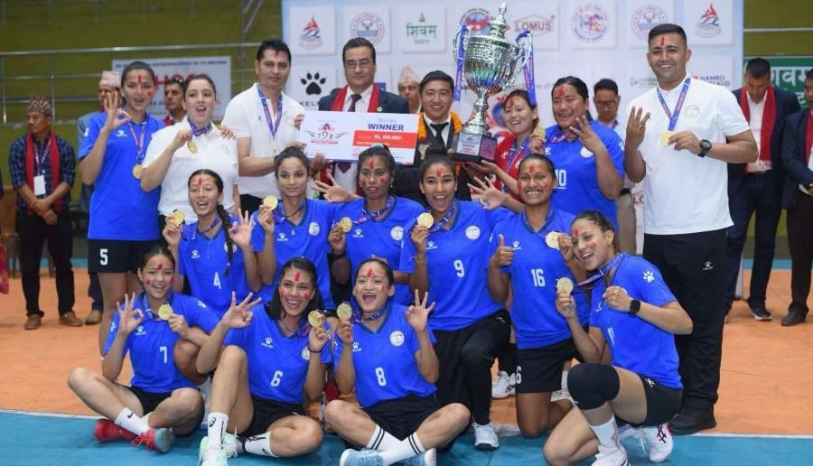 पोखरा स्पोर्टस । नवौ पिएम कप एनभिए भलिबल लिगमा घरेलु टोली गण्डकीलाई ३–२ ले स्तव्ध पार्दै हेल्प नेपाल स्पोर्टस क्लबले उपाधि रक्षा गरेको छ । उत्कृष्ट प्रदर्शन गदैै डिफेन्डिङ च्याम्पियन हेल्प नेपालले बिहिबार भएको फाइनलमा पहिला दुई सेट २५–२० र २७–२५ ले गुमाए पनि पछिल्ला तीन सेट २५–२२, २५–१४ र १५–८ आफ्नो कब्जामा पार्दै उपाधि रक्षा गर्न सफल भयो ।