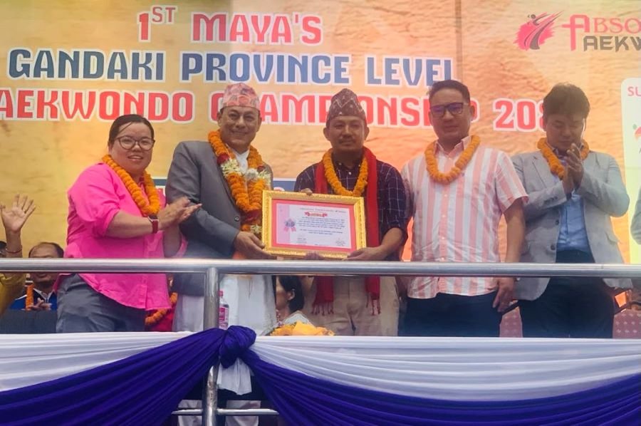 मन्त्री थापाले पोखरामा पहिलो पटक तेक्वान्दो स्कुल ‘अव्सुल्युट डोजाङ’ले आयोजना गरेको गण्डकी प्रदेशस्तरीय खुल्ला तेक्वान्दो प्रतियोगिताको उद्घाटनका क्रममा व्यानरमा हस्ताक्षर मात्रै गरेनन् तेक्वान्दो खेलाडीले प्रदर्शनका क्रममा फोड्ने काठ हातले फोडदै प्रतियोगिताको उद्घाटन समेत् गरे ।