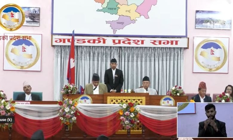 निति तथा कार्यक्रम प्रस्तुत गर्दै प्रदेश प्रमुख भट्टले भने–“गण्डकी प्रदेशमा खेलकुद प्रवर्द्धन गर्न खेलकुद पूर्वाधार निर्माण, खेलाडी सम्मान र खेल पर्यटन विकास गरिने संगै संघ,प्रदेश, स्थानीय तह साझेदारीमा मुस्ताङ जिल्लामा उच्च पर्वतीय खेलकुद प्रशिक्षणको निर्माण कार्यलाई अगाडि बढाइनेछ।”