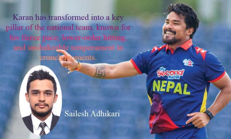 Pokhara Sports / Karan KC, the 33-year-old fast-bowling all-rounder from Baglung, is one of Nepal’s most iconic and reliable cricketers. Rising to fame with a historic last-over win against Canada on February 14, 2018, he was nicknamed “Valentine Boy”—a moment that secured Nepal’s ODI status.
