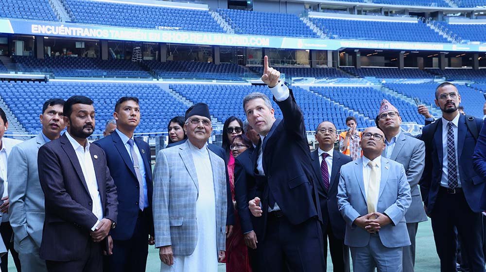 पोखरा स्पोर्टस । स्पेन भ्रमणमा रहेका प्रधानमन्त्री केपी शर्मा ओलीले स्पेनिस क्लब रियल म्याड्रिडको स्टेडियम सान्टियागो बर्नाबेउको अवलोकन भ्रमण गरेका छन् ।   प्रधानमन्त्री ओलीलाई क्लवका अन्तर्राष्ट्रिय निर्देशक पेद्रो मार्टिन दे मिगेलले स्वागतससिहत अत्याधुनिक रंगशालाको भ्रमण गराएका थिए ।