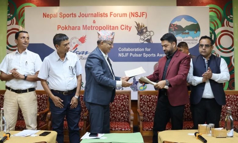 पोखरा स्पोर्ट्स । एनएसजेएफ पल्सर स्पोर्ट्स अवार्डको २२ औं संस्करणको नेपालको पर्यटकीय राजधानी पोखरामा आयोजना हुने गरी औपचारिक रुपमा घोषणा संगै तयारी सुरू गरिएको छ ।  स्पोर्ट्स अवार्डको आयोजक नेपाली खेलकुद पत्रकारहरूको छाता संगठन नेपाल खेलकुद पत्रकार मञ्च (एनएसजेएफ)ले पोखरामा बुधबार एक पत्रकार सम्मेलनको आयोजना गरी तयारी सुरू गरेको घोषणा गरेको हो । पोखरा महानगर पालिका प्रवर्द्धक रहेको पल्सर स्पोर्ट्स अवार्ड भदौ २९ गते आयोजना हुनेछ ।