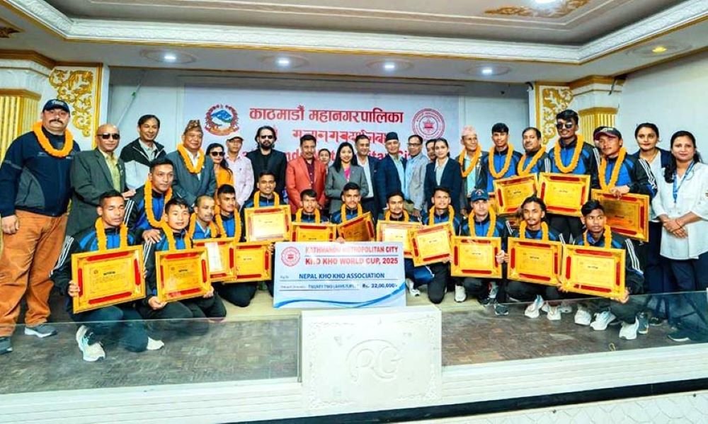 पोखरा स्पोर्टस । काठमाडौं महानगरपालिकाले म्याट्रिक्स फाइट नाइट १७ (एमएफएन १७) च्याम्पियन नेपाली एमएमए फाइटर रवीन्द्र ढाटलाई २ लाख रुपैयाँसहित सम्मान गरेको छ । यस्तै, प्रथम खोखो विश्वकप २०२५ मा उपविजेता बनेका महिला र पुरुष टोलीलाई ११–११ लाख रुपैयाँ गरी जम्मा २२ लाखको चेकसहित सम्मान गरेको छ ।