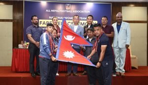 पोखरा स्पोर्ट्स । अखिल नेपाल फुटबल संघ (एन्फा) ले इरान र भारतसँग मैत्रीपूर्ण खेल खेल्ने नेपाली महिला टिमको बिदाई गरेको छ । मंगलबार एक कार्यक्रमका बीच एन्फाका पदाधिकारीहरुले नेपाली राष्ट्रिय महिला फुटबल टिमको बिदाई गरेका हुन् ।