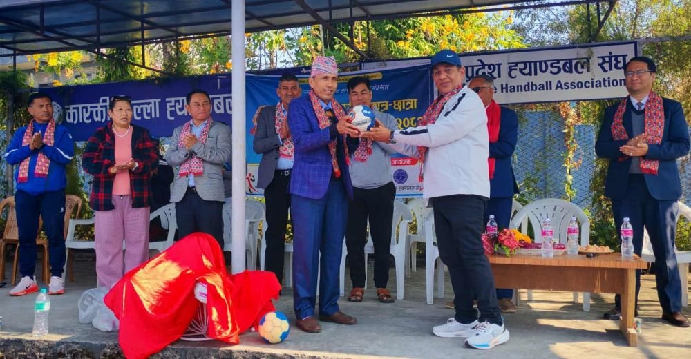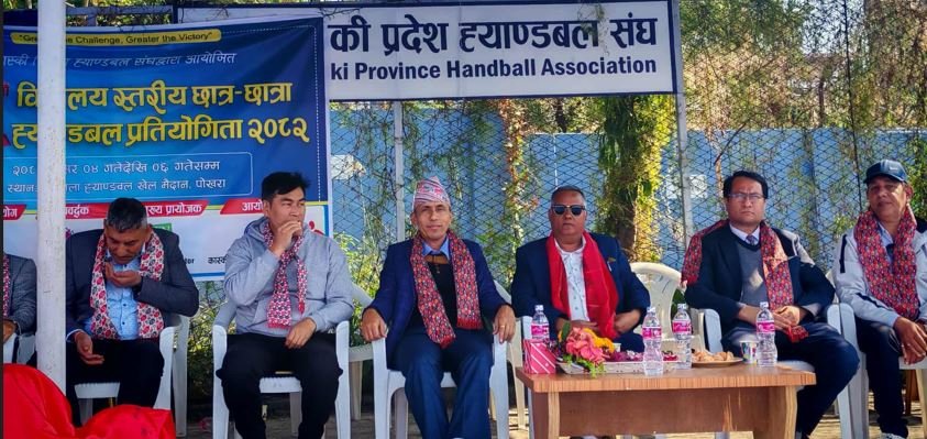पोखरा स्पोर्ट्स । पोखरामा विद्यालयस्तरीय छात्र/छात्रा ह्याण्डबल प्रतियोगिता सुरू भएको छ । कास्की जिल्ला ह्याण्डबल संघको आयोजनामा सुरू भएको उक्त प्रतियोगिताको एक कार्यक्रमका बीच निजि विद्यालयहरुको छाता संस्था प्याव्सन कास्कीका अध्यक्ष षडानन्द गौतमले गरे ।