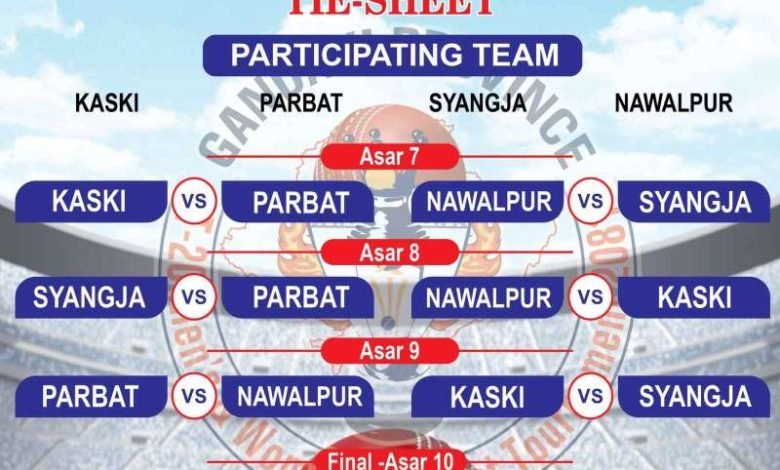पहिलो दिन कास्की र पर्वत तथा स्याङजा र नवलपुरका बीच हुनेछ भने असार ८ गते स्याङजा र पर्वत तथा दोस्रो खेलमा कास्कीले नवलपुरको सामना गर्नेछ ।