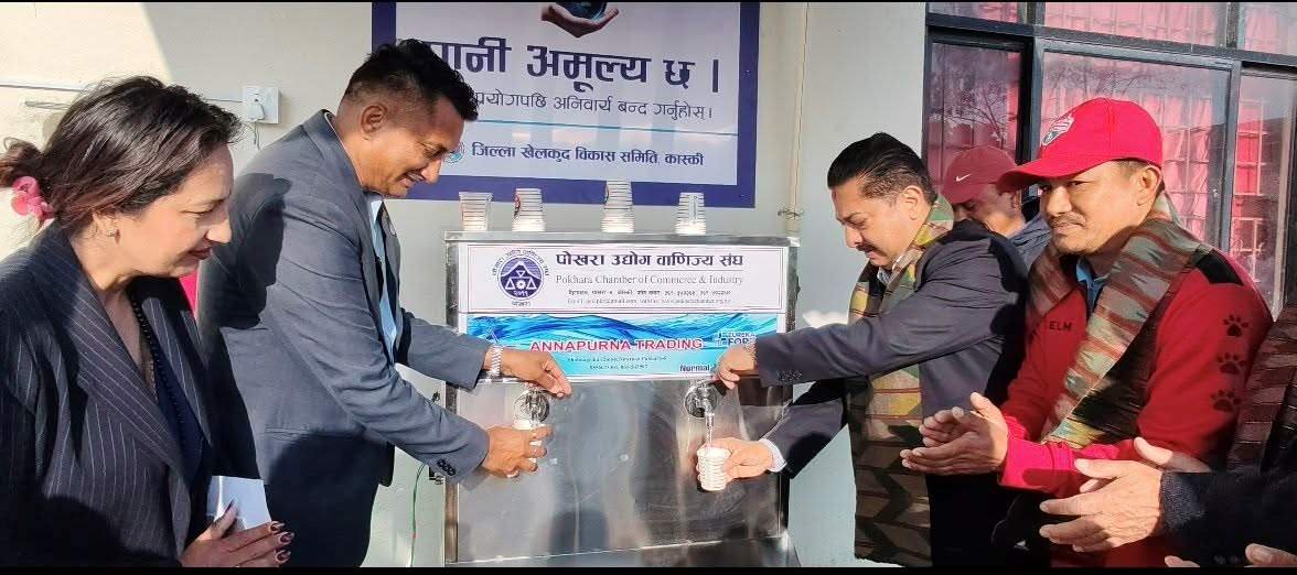 पोखरा स्पोर्ट्स । पोखरा उद्योग बाणिज्य संघले पोखरा रंगशालामा खेलाडी तथा आगन्तुकका लागि शुद्ध पिउने पानीको व्यवस्था गर्न अत्याधुनिक पानी ट्याङ्की (फिल्टर मेसिन) जिल्ला खेलकुद विकास समिति कास्कीलाई हस्तान्तरण गरेको छ । संघको ७२औं स्थापना दिवसको अवसर पारेर उक्त सहयोग प्रदान गरिएको हो ।